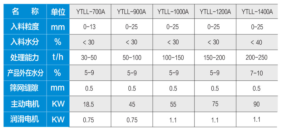 YTLL系列動(dòng)篩跳汰機技術(shù)參數表