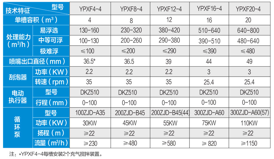 YPXF系列噴射吸氣式浮選機技術(shù)參數表