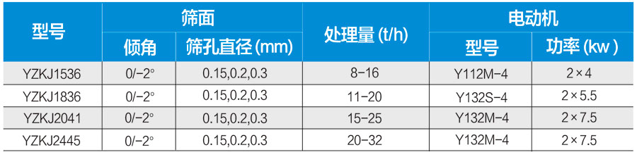 YZKJ系列高頻沫煤回收篩技術(shù)參數表