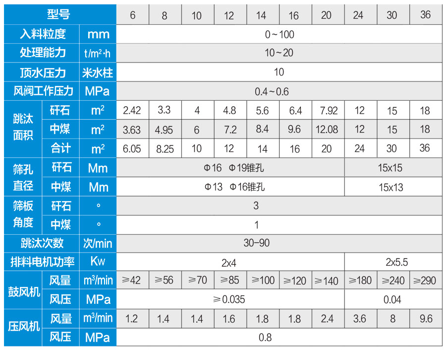 YSKT系列數控跳汰機是我國知名的選煤設備,和老式跳汰機相比,效率可提高3%-5%,單位處理能力可提高20%,被國家確定為重點(diǎn)推廣項目。此種跳汰機工藝流程簡(jiǎn)單,對各種篩分組成的原煤都有較好的分選效果,YSKT系列數控跳汰機有36、33、30、27、24、22、18、16、14、12、10、8和6m2等規格。YSKT系列數控跳汰機適用于難選煤、以及含矸率較高的半煤巖工程煤。