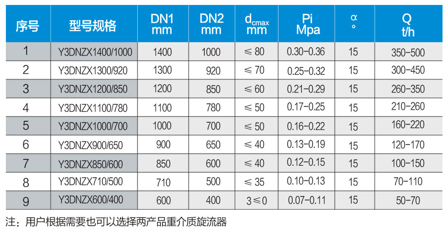 Y3DNZX 系列有壓給料三產(chǎn)品重介質(zhì)旋流器技術(shù)參數表